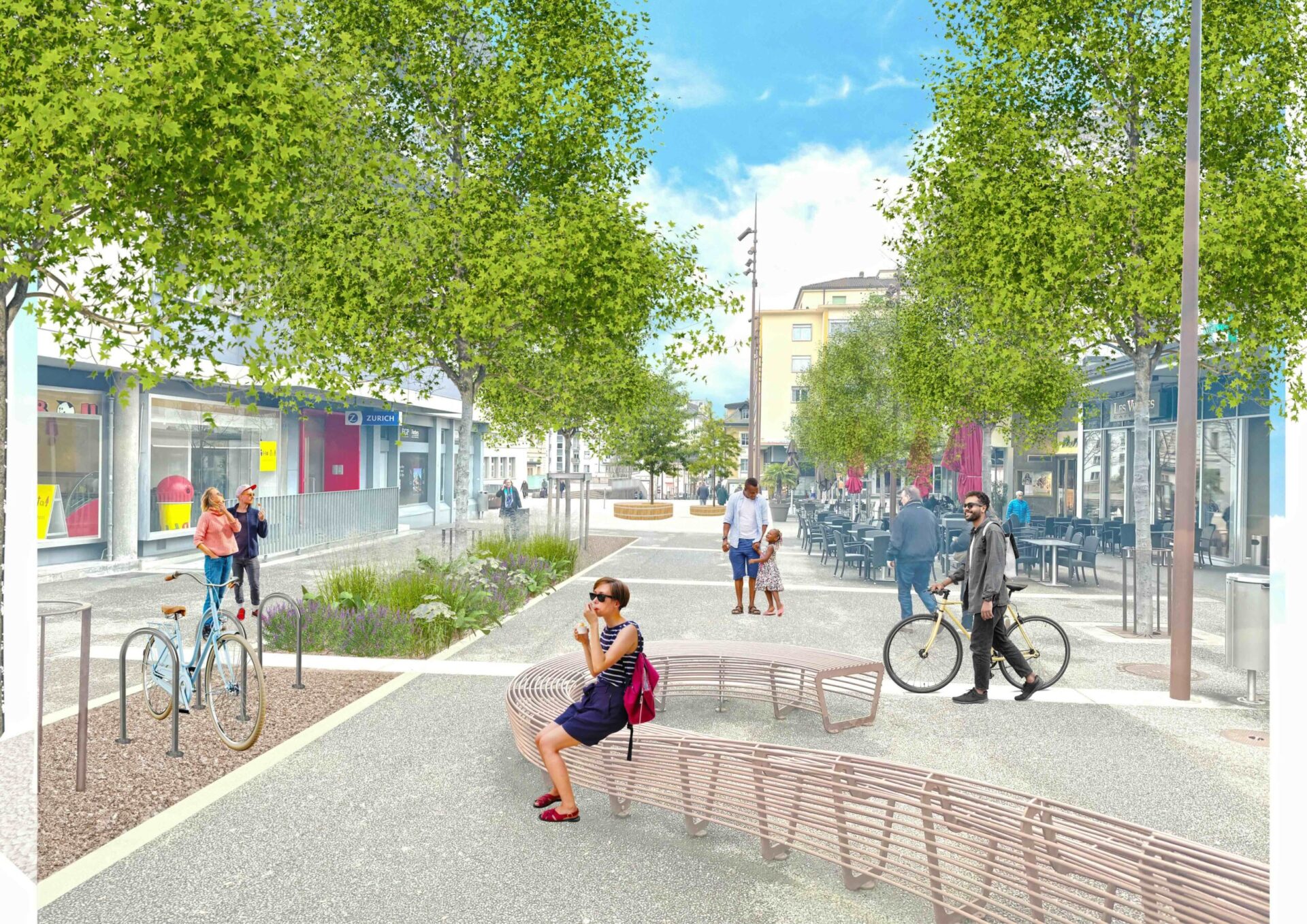 Située entre la gare CFF et l’avenue du Général Guisan, la place de l’Hôtel de Ville s’affirme comme l’un des espaces publics majeurs de Sierre. Débarrassée du trafic, elle se transforme en un lieu de séjour accueillant, respectueux de son identité architecturale et ouvert à tous les usages du quotidien comme aux grands événements de la ville.